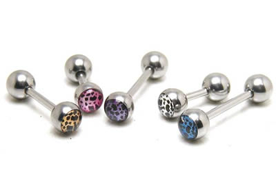 ボディピアスの定番バーベルのボールに、人気のヒョウ柄をデザインしたセクシー&キュートなボディジュエリー。
