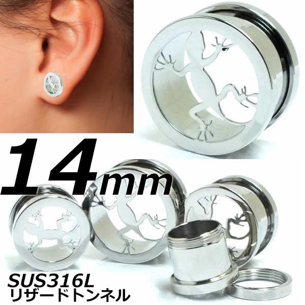 [ 14mm トカゲ ボディピアス ] リザードトンネル 14ミリ 14.0mm ボディーピアス 土管型 蜥蜴 サージカルステンレス316L 金属アレルギー メンズ レディース ネジタイプ ペア 耳 ネジ式 ラージホール ビッグ 埋め込み型 ネジタイプ プラグ 大きい ビッグ ラージ オーバー