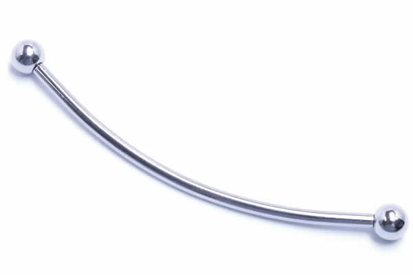 シャフトの部分が1インチ以上もある、長いシャフトのゆるやかなカーブバーベル型ボディピアス。ロングタイプのバナナバーベルはサーフェイスや、直線上に位置していないインダストリアルなどに使えます。もちろん、それ以外の部位もの装着可能です。軸長やボールの大きさも選ぶことができ、自分にあったサイズのボディピアスを選べます。