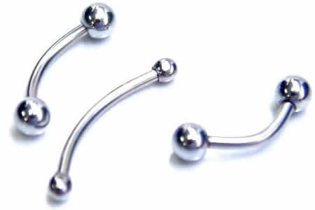 シャフトの部分がゆるやかなカーブを描いた18ゲージののボディピアス。ヘソピアスだけでなく、マユや腕などいろいろな場所に装着できるアクセサリー。シャフトの内径やボールの大きさも数多くあり、自分にあったサイズを選べます。両端がネジ式になっているヘソピアス型なので装着しやすいです。シャフトが細いのでヘソピアスよりアイブローやアゴのピアスにオススメ。