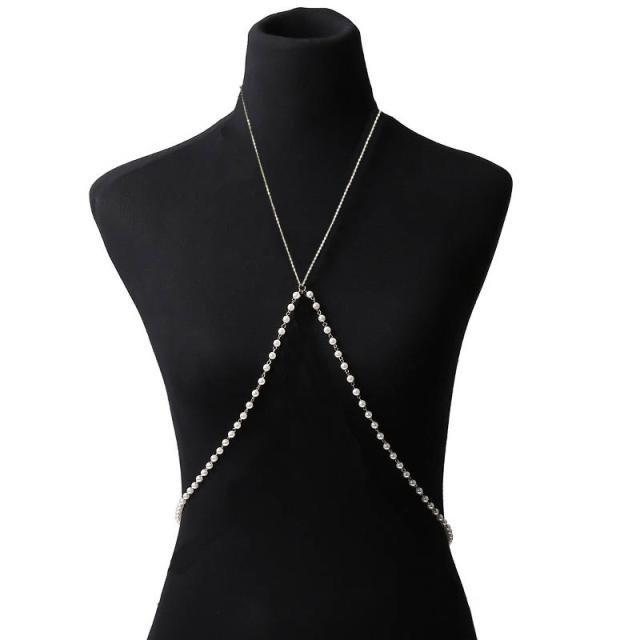 ドレッシーなロングパールのボディチェーン。水着に合わせても洋服に合わせても存在感を放つボディチェーン。夏は浜辺やクラブで、冬はドレッシーなパーティで目立つこと間違いなし!大人セクシーやガーリースタイルなど幅広くコーデできる。