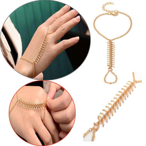 ファーンフィンガーリング ブレスレット フィンガーブレス ブレスレットと指輪をつなぐ メンズ レディース ジョイントリング ファランジリング メンズ チェーンリング ゴールド 金色 繋ぐ 結婚式 2次会 パーティ 女子会 大人 キレイめ スーツ 腕輪