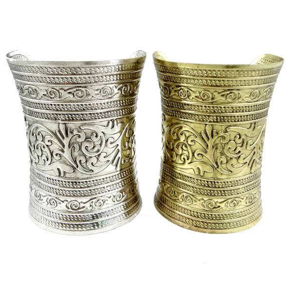 アンティークシルバーとアンティークゴールドのメッキを施したボヘミアンスタイルのアームレットバングル。長いロングタイプなので存在感もバッチリ!