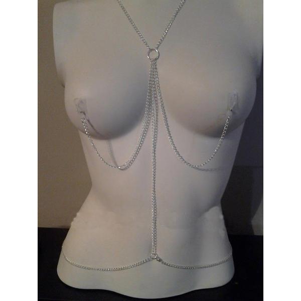 ネックレスとニップルチェーンとウエストチェーンをつなげたセクシーなボディチェーンです。全身をチェーンでつなげた下着のような感覚で装着できるボディチェーン。