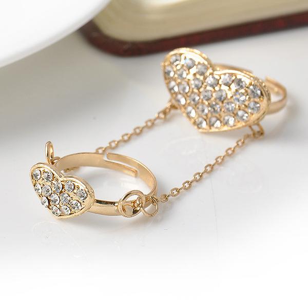 ラブハートジョイントリング 指輪 ファランジリング チップリング メンズ レディース フォークリング ミディリング フィンガーリング アーマーリング フリーサイズ ラインストーン つなぐ 繋ぐ クリスタル チェーン ゴールド 結婚式 パーティ 2次会 卒業式