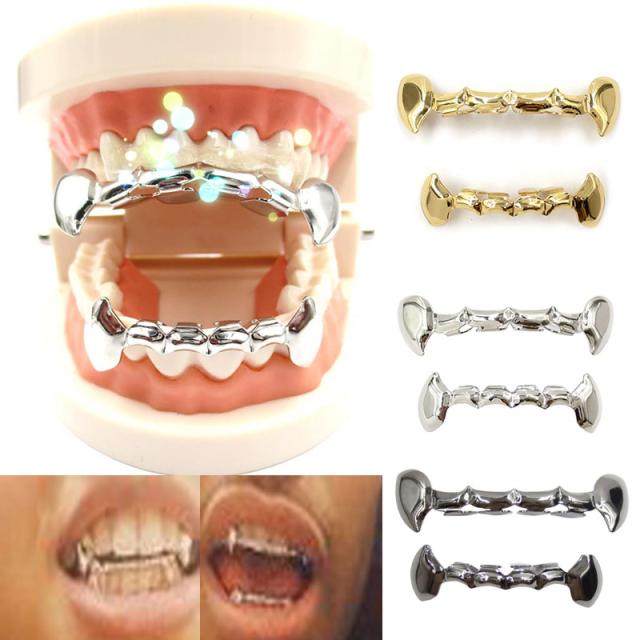 牙 バンパイアファング 金歯 銀歯 シルバー ゴールド ブラック 黒色 吸血鬼 ドラキュラ バンパイヤ 上下1セット おもしろ 面白 オモシロ おもちゃ つけ歯 入れ歯 差し歯 雑貨 アクセサリー 貼りつけ コスプレ ハロウィン 仮装 面白い ハロウィーン パーティ 変身
