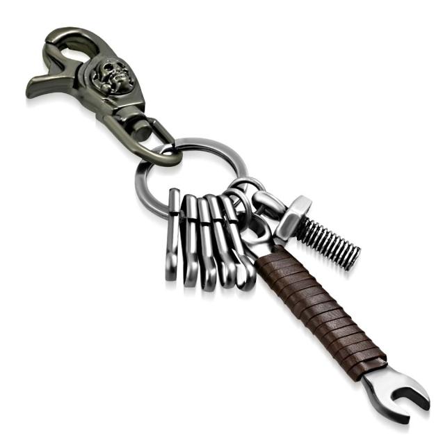 ドクロとスパナトレンチをデザインした男性におすすめのメンズ用キーリング。ベルトループやベルトに止めて鍵をスタイリッシュに収納するアクセサリー。父の日やクリスマス、ホワイトデーのプレゼントにもおすすめ!おしゃれさんは小物にもこだわりたい。高級感を醸し出すキーホルダーです。