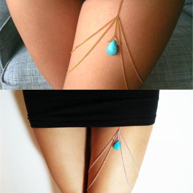 ドロップターコイズレッグチェーン トルコ石 レッグチェーン ゴールドチェーン 太もも ガーター タイツ 脚 美脚 ボディチェーン ハーネス 足 太腿 太股 レディース アンクレット フットチェーン ボディチェーン ボヘミアン インディアンジュエリー エスニック アジアン