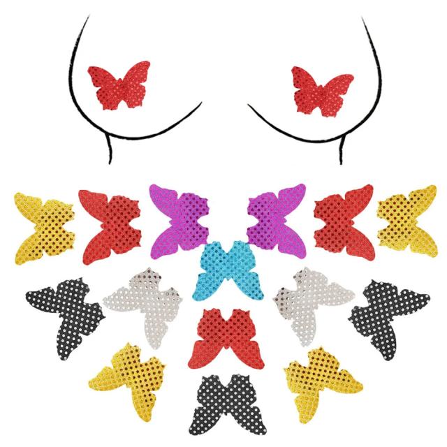 ラメバタフライニップルステッカー/1ペア販売 スパンコール ドット チョウチョウ 蝶々 乳首 シール 貼るだけ 下着 ブラ ランジェリー アクセサリー レディース ダンサー 女子 バストトップ 大人 セクシー ニップレス 胸 キラキラ ニプレス 踊り子 カーニバル サンバ