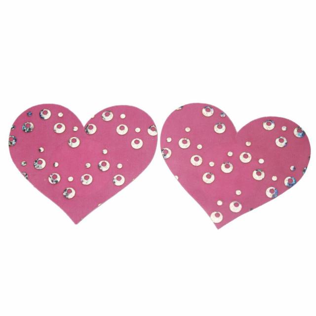 キラキラのピンクのハートをデザインした下着感覚で乳首に貼るだけのニップルシール。服を着ているとニップルピアスやへそピアスをアピールできないって人にもおすすめ!下着が嫌いな貴女にも!バストトップ(乳首)にステッカーで貼る下着感覚のニップルジュエリー。セクシーで大人の雰囲気を醸し出すニップレスシールは、自分だけのおしゃれも楽しめる。ダンサーにもおすすめ。貼るだけ簡単ニップルアクセサリー。ピアスが開いていなくてもだれでも簡単装着。衣装のような大人のアクセサリー!