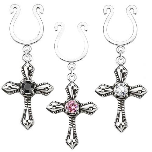 ロザリオニップルクリップ 十字架 クロス 乳首 ニップル ボディピアス メンズ レディース ニップルジュエリー フェイクニップル 穴あけ不要 挟む はさむ イヤーカフ 耳 鼻 ノーズリング セプタム イヤリング ノンホールピアス 開けない ラインストーン ノンホール ノーホール