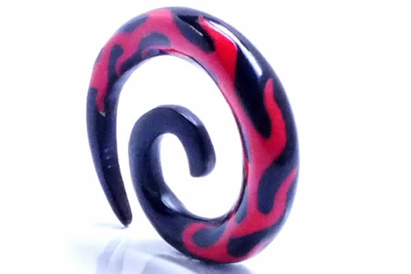 ネイティブホーンピアス(バーニング) 2ゲージ 2G 6ゲージ 6G ツイスト スパイラル 赤 レッド 拡張 マイマイ ボディピアス 水牛の角や骨 金属アレルギー対応 メンズ レディース インディアンジュエリー 手作り ボヘミアン ペア 黒色は角 白色は骨 赤色 炎 レッド