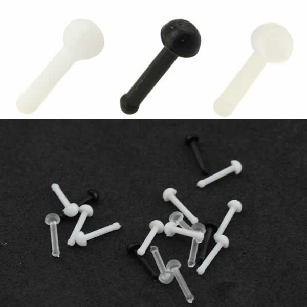 シンプルアクリル鼻ピアス 18G 18ゲージ ボディピアス プラスティック 樹脂 レディース 金属アレルギー対応 ホワイト 白 クリア 透明ピアス ブラック 黒 真っ直ぐ ストレート ノーズスタッド プレーン 隠す 樹脂 プラスチック プレーン キャッチなし ストレート 耳 軟骨