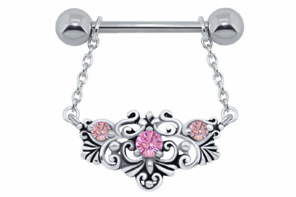 美細なデザインが美術品のようなニップルピアス。細やかなデザインワークとジルコニアが上品コーデをアシストしてくれるニップルジュエリー。まるで高級な下着のようなニップルピアスは、女性だけでなく男性にもオススメのピアッシングです。プレゼントやペアアクセサリーにもオススメです。乳首にピアスとしてだけでなくヘリックスピアスやサーフェイスにも使いたい。