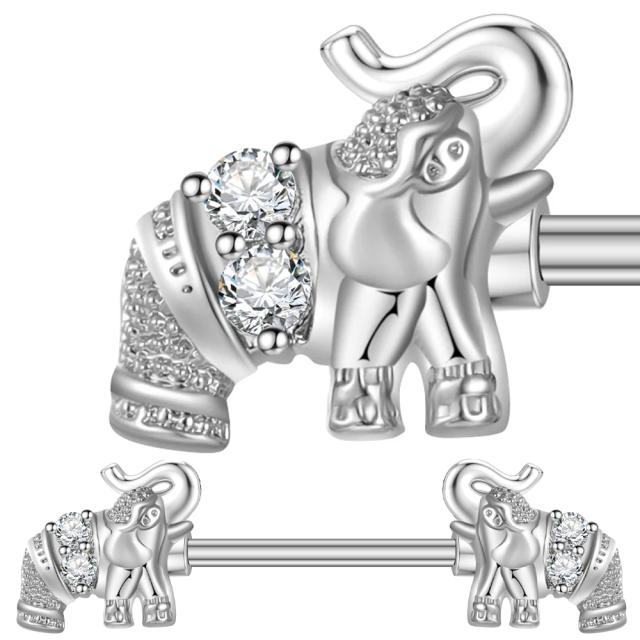 エレファント ストレートバーベルは、可愛らしい象のデザインが特徴で、ジュエルクリスタルがキラリと輝きます。シルバーの色合いがどんなスタイルにもマッチしてくれる動物モチーフが好きな方におすすめのアイテムです!