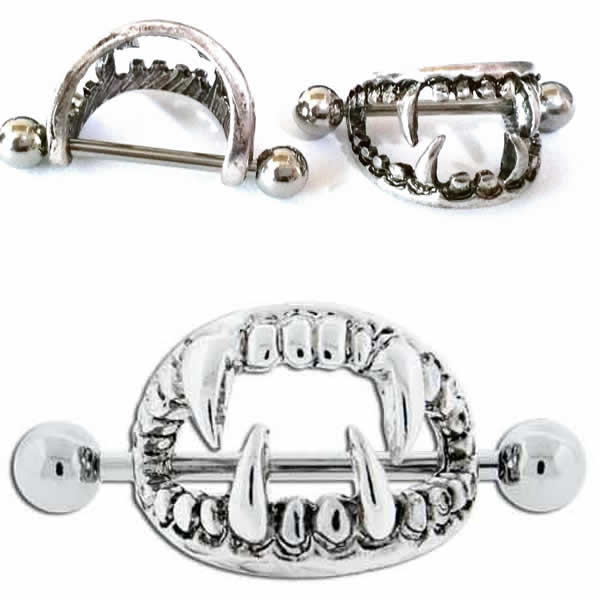吸血鬼をモチーフにしたニップルボディピアス。鋭利な牙が乳首に噛みつくスタイリッシュなボディピアス。ハロウィンの仮装やナイトクラブで見せたくなるニップルピアス。下着感覚で楽しみたいランジェリーボディピアス。