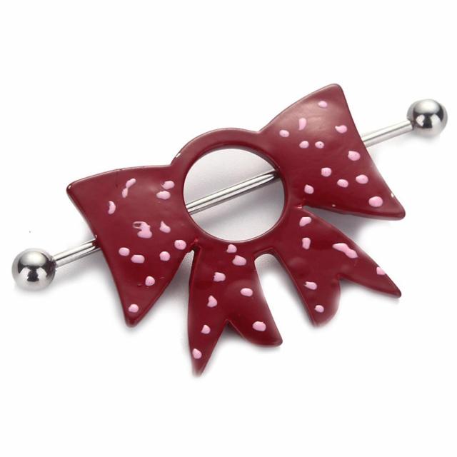 水玉模様の赤色の可愛いリボンのニップルボディピアス。大きくて赤いリボンのニップルは存在感もたっぷり。リボンのいっぷるを自分の乳首に付けて可愛くラッピングして彼にプレゼント♪