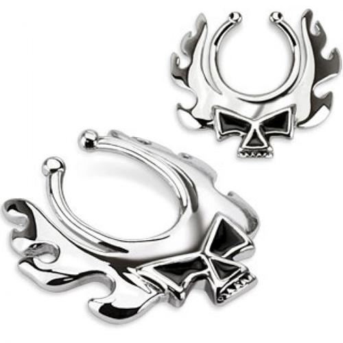 フレイミングスカルニップルクリップ ドクロ ガイコツ 乳首 ニップル ボディピアス メンズ レディース ニップルジュエリー フェイクニップル 穴あけ不要 挟む はさむ イヤーカフ 耳 鼻 ノーズリング セプタム イヤリング ノンホールピアス 開けない ノンホール ノーホール