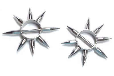 リングニップルの周りにロングスパイクを放射線状にセットしたハードな乳首のピアスです。