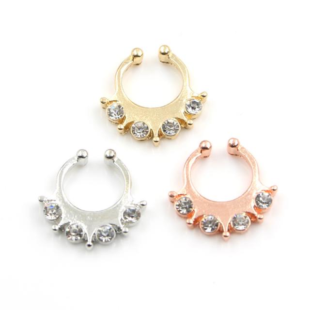 リズ ノンホールピアス フェイクリングピアス ノンホール フープピアス風 1個販売 シルバー ゴールド ピンクゴールド フェイク鼻ピアス セプタム ノーズクリップ 耳たぶ 軟骨 イヤーカフ ヘリックス メンズ レディース イヤリング 開けない はさむ ラインストーン ノーホール