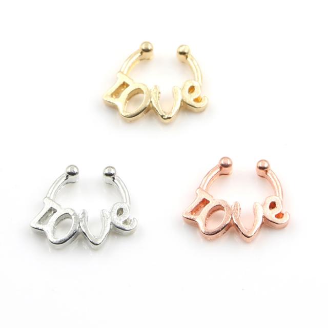 LOVE ノンホールピアス フェイクリングピアス ノンホール フープピアス風 1個販売 シルバー ゴールド ピンクゴールド フェイク鼻ピアス セプタム ノーズクリップ 耳 軟骨 イヤーカフ ヘリックス メンズ レディース イヤリング 開けない はさむ 英語 ラブ おもしろ メッセージ