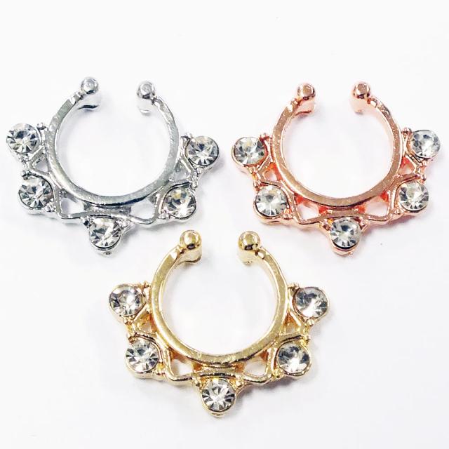 セプタムにピアスホールを開けなくても装着できるフェイク鼻ピアス。クリップ型なので、セプタムの位置だけでなくノーズリングとしてもイヤーカフとして耳にも、ニップルクリップなどいろいろなフェイクピアスに使えます。カラーも豊富でスタイルによって装着できる。ピアスを開けていなくても簡単に装着できるので、プレゼントにも!海外セレブの間でも話題のセプタムリングです。