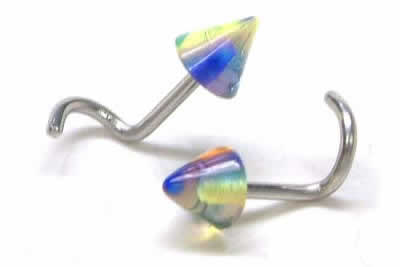 ボディーピアスの中でも定番中の定番、はなピアスをキャンディーコーンにすることでポップな雰囲気を醸しだすジュエリーは男女を問わず装着できる人気の高い鼻ピアスです。