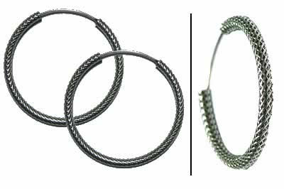 シルバーリングピアスを細かく打ち込むことでまるでフェンスのような独特のフォルムに仕上げたパンクなシルバージュエリーです。輝きすぎないマッドな雰囲気のフープピアスは、クロのボディピアスとあわせてつけてもかっこいいシルバーアクセサリーです。大きさ違いもたくさんあるジュエリーなので、ペアで大きさ違いでつけたり重ね付けするのもオススメのジュエリーです。パンクロックな彼氏、彼女にプレゼントするのもオススメです。スタイルしだいでは綺麗系のピアスとしても使えるシルバーのピアスです。