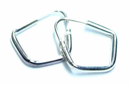 シンプルなフープピアスを菱形にデザインした個性的なシルバーピアスです。一見、ユニークなデザインに見えますが、装着すると、尖ったトップの部分が先鋭でスムーズな見た目を実感できる計算されたリングピアスです。個性的だけどどこかクールなリングピアスは、個性的なカップルのペアリングにもオススメ!大きさ違いもあるので、合わせてコーディネートしてもかっこいいリングピアスです。シルバーアクセサリーマニアも納得させるありそうでなかった形状に惚れる。トップ部分にビーズなど通して自分だけのデザインに仕上げたい。
