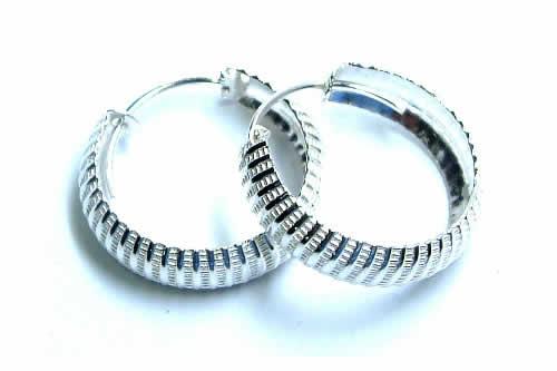 レースのような細やかなデザインとホワイトシルバー加工された綺麗なフォルムのリングピアス。ゆる可愛い気分のときもキレイめカジュアルな気分な時も 大人セクシーな気分の時も合わせてみたいオールマイティなフープピアスです。程よい厚みと、白銀仕上げされた細やかなデザインワークがフープピアスにフリルのようなふんわりとした優しい雰囲気を醸し出すシルバーピアスです。もちろん、男性にもオススメのピアスなので、ペアで愛用したりプレゼントしたりも最適。大きさ違いもあるので、あわせてコーデしても綺麗。