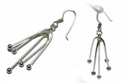 先端にシンプルなボールをセットしたパーツを3本リンクさせることによって、雨が降ってくる様子をデザインにしたアーティスティクなシルバーピアスです。