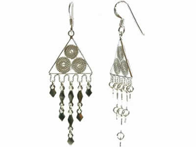 ワイヤーワークを施した三角のデザインのトップに長さの異なる菱形のパーツをリンクさせた優雅なフォルムのピアスです。三角とチャームのつなぎ目までワイヤーワークを施したこだわりの逸品。