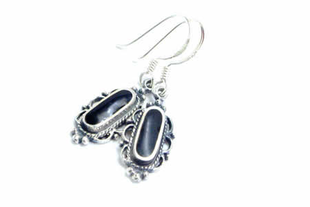 アンティークなレリーフの真ん中にオニキスをセットした上品なデザインのシルバーピアスです。