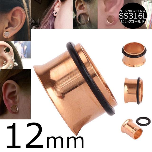 [ 12mm 女子人気 ピンクゴールド ボディピアス ] シングルフレア 12.0mm ボディーピアス サージカルステンレス316L 低アレルギー レディース 女性人気 ホールピアス ホールトゥピアス ゴムキャッチ ラバーキャッチ 片側 広い 大きい ビッグ ラージ ホール 耳 ハーフインチ