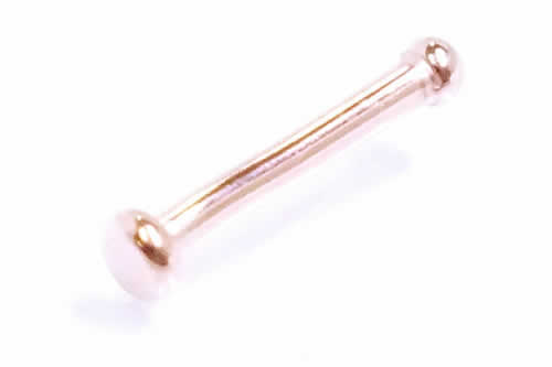 ピンクゴールドメッキされたフラットなヘッドの鼻ピアス。シャフトが真っ直ぐのノーズボーン(ノーズスタッド)タイプなので、装着もしやすく、ファーストピアスにも使えます。リッチな気分にさせてくれるピンクゴールド鼻ピアスは、プレゼントにもお奨め。