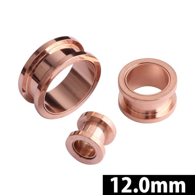 [ 12mm 女性人気 ピンクゴールド ボディピアス ] ピンクゴールドトンネル 12.0mm 12ミリ サージカルステンレス316L 金アレ メンズ レディース ペア 耳 ネジ式 ラージホール ビッグ 埋め込み型 ネジタイプ ホールトゥピアス プレーン 定番 シンプル 大きい インチ