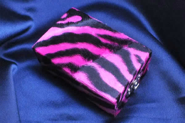 ピンク色のトラ柄のフェイクファーを貼り付けたジュエリーボックス。ピアスを中に入れてディスプレイごとプレゼントしてもオシャレ!中には鏡とジュエリーを固定するホルダーが4個ついています。こんな可愛いジュエリーケースなら家に置いておくだけじゃなくて、カバンに入れて持ち運びしたくなっちゃう。彼氏の家にお泊りするときも、コンパのときもお買物行くときもいつでも持ち歩きたくなるディスプレイケース。ピアスと一緒にこのディスプレイボックスをプレゼントしてもOK。ショップ経営しているあなたもディスプレイ用にいかがですか?