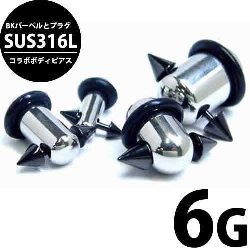 [ 6G 個性的 コラボ ボディピアス] プラグッチ(ブラック コーン ストレートバーベル 14G ) 6ゲージ 6Ga ボディーピアス サージカルステンレス316L メンズ レディース 14ゲージ 黒色 バーベル ゴムキャッチ ボディーピアス オモシロ ラバーキャッチ 耳 軟骨