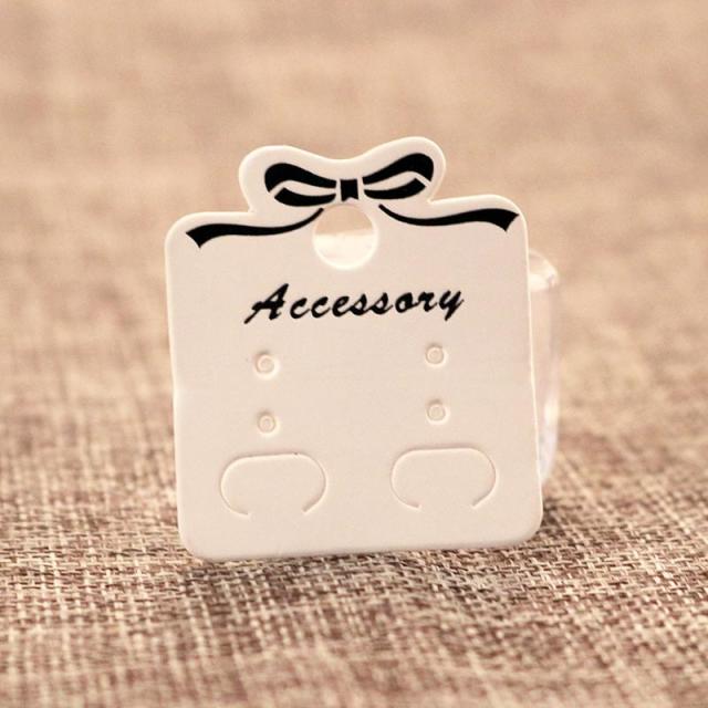 35mmx40mmの白色の台紙にリボンをデザインした6個の穴をあけたピアス用台紙。スタッドピアス、キャッチピアス、フックピアスをディスプレイするのに適した紙でできたペーパータグ。