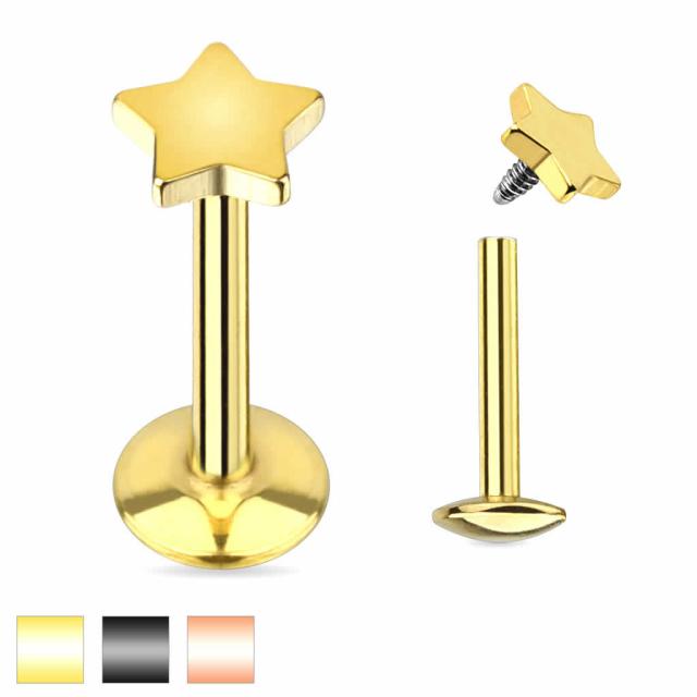 [ 16G 内ネジ 金色 ボディピアス ] プチ スター ラブレット インターナル 16ゲージ サージカルステンレス 低アレルギー メンズ レディース 逆ネジ ブラック イエローゴールド ピンクゴールド 黒色 金色 小さい 星 ヘリックス トラガス アンテナ リップ 口ピアス 軟骨