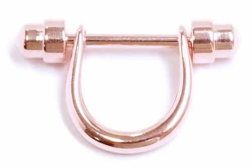 ピンクゴールドのU字型のシールドにビュレッツバーベルをセットしたニップルピアス。素材はもちろん安心のサージカルステンレスなので、比較的低アレルギーなのが嬉しい。乳首ピアスとしてだけでなく、耳たぶやヘリックスピアスにもよく使われる。サイズが豊富なので使い易い。ピンクゴールドピアスでトータルコーデすればリッチ感満点!別売りのネジパーツを組み替えてカスタムメイドしてもおしゃれ。女の子に人気のピンクゴールドは、オシャレな彼女へのプレゼントにもお奨めです。