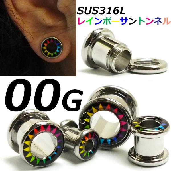 [ 00G 土管型 ボディピアス ] レインボーサントンネル 00ゲージ 00Ga ボディーピアス カラフル 虹色 太陽 ボヘミアン エスニック 民族系 サージカルステンレス316L 金属アレルギー メンズ レディース ネジタイプ ペア 耳 ネジ式 ラージホール ホールトゥピアス 大きい ビッグ