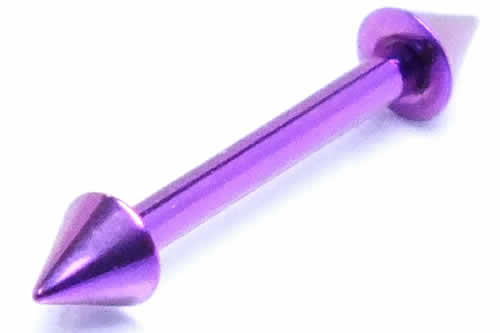 低アレルギーのチタンピアスを紫色に発色させた色鮮やかなバーベルタイプのチタン製ボディピアスです。発色チタンはメッキじゃないので色が剥がれたりせず、また素材もチタンなので、肌に優しく、アレルギーを引き起こしやすいといわれるニッケルを含んでいないのでアレルギーの人でも安心。ゲージサイズや内径サイズ、コーンサイズまで選べるカラーチタンピアスは、ファーストピアスやセカンドピアスにも使いたいボディーピアスです。プレーンな形のバーベルスタッドなので、色々な場所へのピアッシングに使えます。耳たぶへのピアッシングだけでなく、ヘリックスやトラガスにも使えるチタンボディピアスです。
