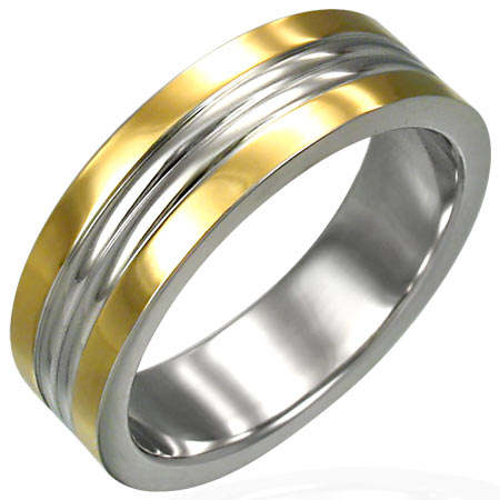 ゴールド使いが上品でリッチな気分にさせるサージカルステンレスリング。