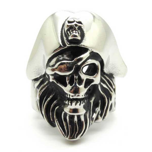 パイレーツスカルステンレスリング(ERA058) サイズ/28号/31号 海賊ドクロの指輪 おもしろ 大きいサイズ 立体 リアル サージカルステンレス316L メンズ レディース ペアリング プレゼント ギフト 彼氏 男性 髑髏 骸骨 ガイコツ ユニーク 中指 親指 人差し指