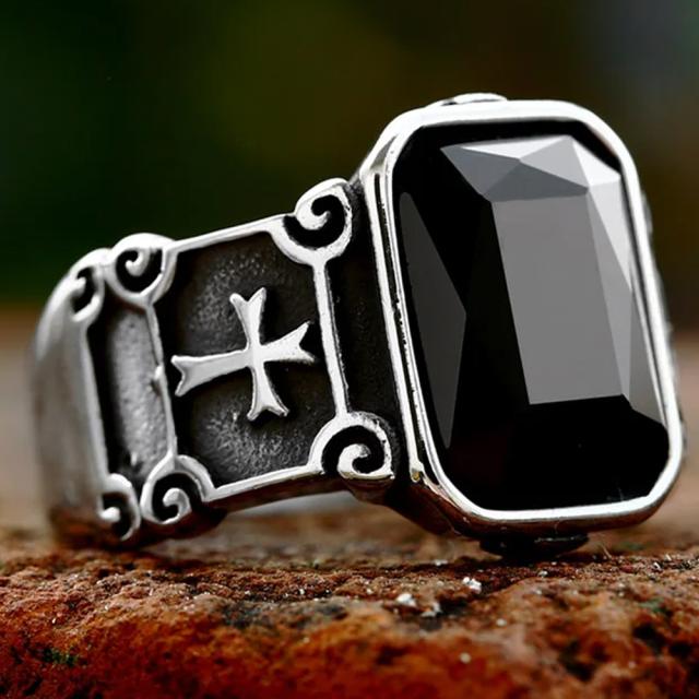 スクエアブラックストーンクロス ステンレスリング(ERB038)サイズ/30号 黒色 ブラック ストーン 四角形 印台型 十字架 かっこいい 指輪 サージカルステンレス316L メンズ レディース ペアリング プレゼント ギフト 人気 おしゃれ 男の人 女の人