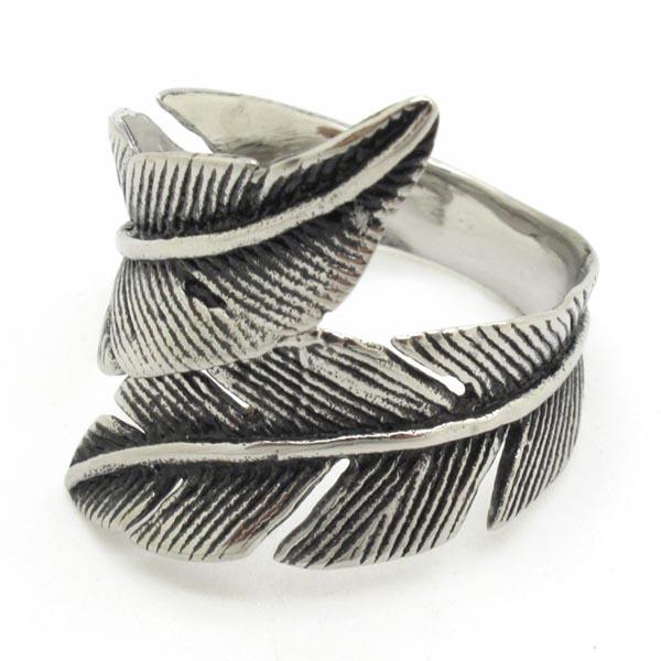 ビッグフェザーステンレスリング(ERB051)サイズ/14号/15号/16号/17号/18号/19号/20号/21号/22号/23号/24号/25号/26号/27号/28号/29号/30号/31号/32号/33号 羽 翼 インディアンジュエリー 指輪 サージカルステンレス316L メンズ レディース ペアリング フリーサイズ