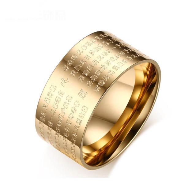黄金の般若心経ステンレスリング(LRC162)サイズ/13号/16号/18号/21号/23号 サージカルステンレス316L ゴールド メンズ レディース 指輪 おもしろ お経 プレゼント ギフト 個性 写経 面白い 仏教 オモシロ 法事 お盆 坊主 男子 男性 彼氏 日本 ペアリング 金メッキ