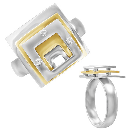 コンセントリックリング(ゴールド)(LRC206)サイズ/20号 金色 個性的 スクエア 四角形 ステンレスリング 指輪 サージカルステンレス316L 低アレルギー メンズ レディース ペアリング プレゼント ギフト 結婚 婚約 記念日 誕生日 ピンキーリング