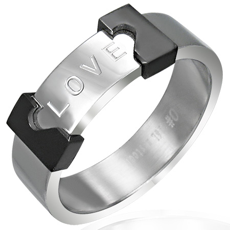 ブラックのハートをモチーフにしたパーツの真ん中にLOVEをデザインしたメッセージリング。